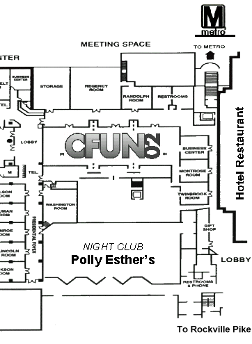 | This is the layout of the DoubleTree Hotel. You will find an entrance near the lobby and an entrance on the metro side of the Hotel. The conference room is labeled CFUN-02 and you will find restrooms directly across the hall. | ||