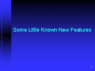 Some Little Known New Features