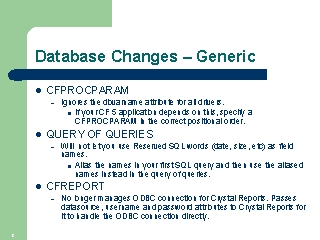Database Changes – Generic