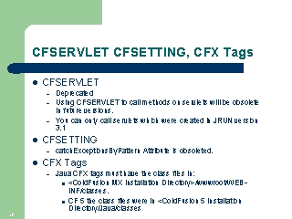 CFSERVLET CFSETTING, CFX Tags